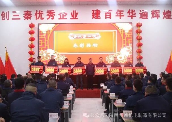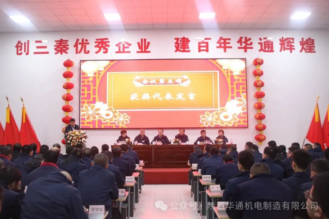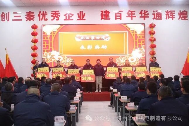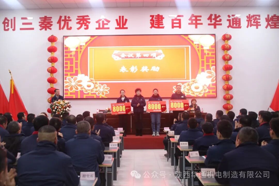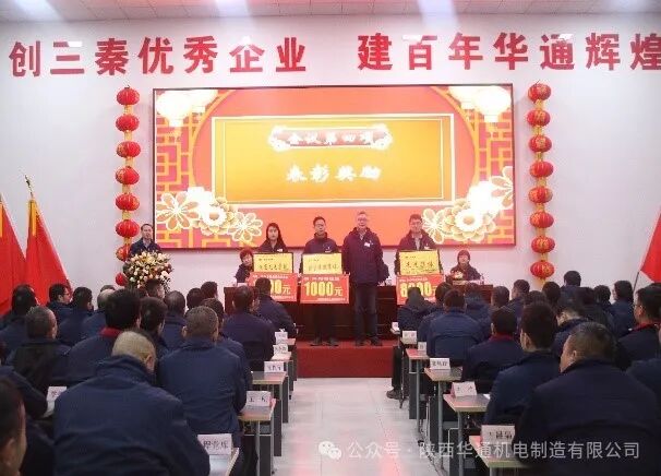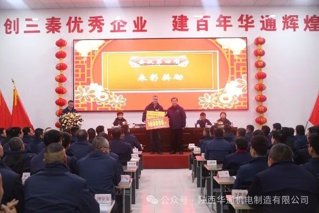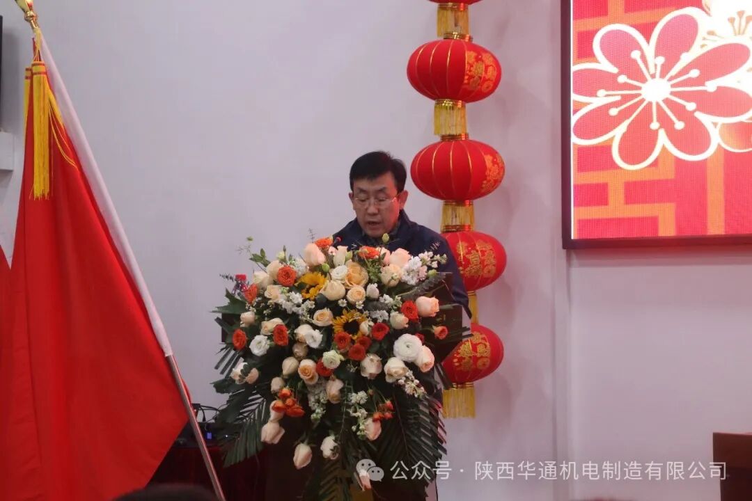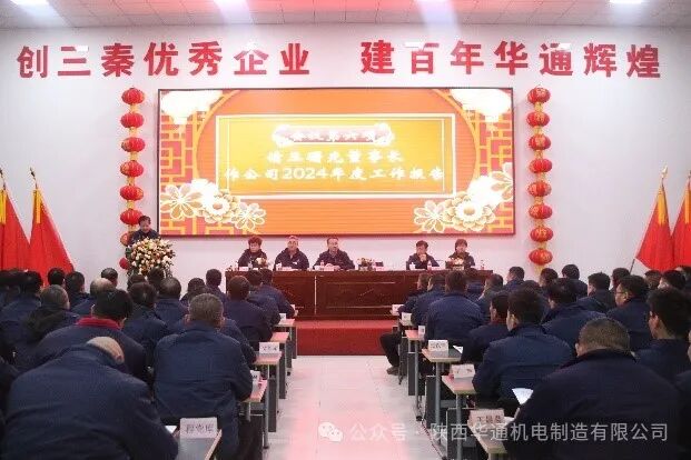 日月其迈,岁律更新。2025年1月25日中午,华通公司2024年度工作总结暨表彰大会在公司五楼多功能厅隆重召开,机电事业部全体员工在西安公司第二会议室通过视频参加了会议。会议由常务副总经理郭金虎主持。董事长王曙光作了2024年度工作报告,全体员工近450人参加了会议。