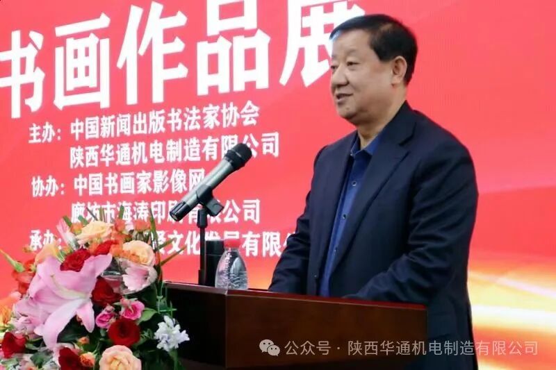 他表示:“这次展览,受到了领导、专家的高度好评价,让我感到非常欣慰,说明我们企业与文化结合,办了一件实事、好事。我代表主办单位陕西华通机电制造有限公司和中国新闻出版书法家协会,向各位领导、书画家和来宾表示感谢!希望我们共同携手,为祖国的繁荣昌盛和传统文化的发展,做出各自的贡献。”