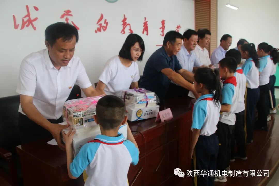 2021年6月24日,陕西华通机电制造有限公司党支部为炳公学校贫困家庭学生捐赠图书、学习用品,传递党的关爱和温暖。