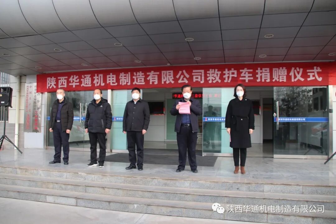 在捐赠仪式上,王曙光董事长代表陕西华通机电制造有限公司向乾县人民医院、乾县中医医院、乾县疾控中心共捐赠5辆福特医用救护车,当上述三家单位的负责人从王董手中接过救护车钥匙时,全场响起了热烈的掌声。在全体与会人员的注目下,五辆崭新的福特医用救护车披红挂彩,徐徐驶出了华通机电公司,开赴乾县疫情防控和医疗工作的第一线。